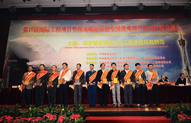 2011年10月23日-24日,第十屆國際工程項目管理高峰論壇暨全國優(yōu)秀項目經理經驗交流會在千年古都、牡丹花城洛陽隆重舉行。全國各省、自治區(qū)、直轄市建筑業(yè)協(xié)會(聯(lián)合會)以及各行業(yè)協(xié)會,建筑業(yè)企業(yè),工程項目經理等各方代表,中建協(xié)工程項目管理委員會理事共500余人參會。我集團公司第一房建公司總經理項修國同志喜獲2010年度全國建筑業(yè)企業(yè)優(yōu)秀項目經理,并參加了此次論壇。