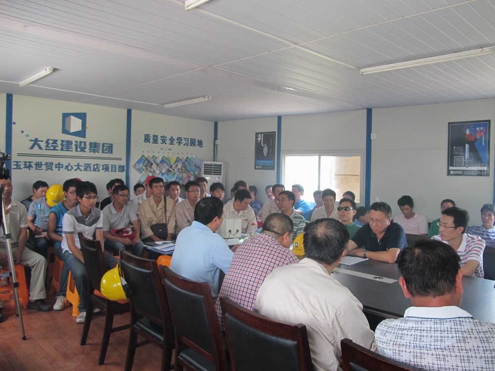 活動相關(guān)人員在對施工現(xiàn)場進(jìn)行實(shí)地參觀體驗(yàn)后,在現(xiàn)場會議室召開了交流會,該工程項(xiàng)目經(jīng)理鄭敬革同志就如何抓好開工前的準(zhǔn)備工作及健全安全管理體系、如何落實(shí)安全生產(chǎn)責(zé)任人及全面提高員工素質(zhì)、如何抓好安全生產(chǎn)和文明施工工作、如何做好項(xiàng)目的管理與團(tuán)隊(duì)建設(shè)等作了生動的經(jīng)驗(yàn)交流。
