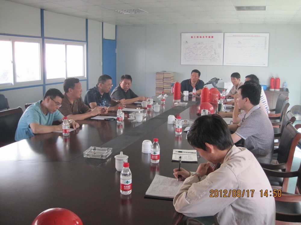當(dāng)天在工地會議室召集了分公司負(fù)責(zé)人與項目負(fù)責(zé)人等相關(guān)人員,商討后續(xù)管理工作。該工程項目經(jīng)理潘力君首先感謝集團(tuán)公司的關(guān)懷與厚愛,并對該項目各方面情況作了一一匯報,期盼集團(tuán)公司能出面協(xié)調(diào)該工程存在的一些實際困難。會上,董事長李建強(qiáng)對該工程質(zhì)量、安全和進(jìn)度等各方面情況進(jìn)行了肯定,提到目前該工程已進(jìn)入后續(xù)施工階段,對安全工作切忌放松管理,尤其對高空拋物與高處墜落等容易出現(xiàn)安全事故的重點領(lǐng)域進(jìn)行防控與落實,并針對目前該項目所存在的實際困難公司會予以協(xié)調(diào)解決。最后,他希望大家再接再厲,圓滿順利完成該項目的總目標(biāo)。