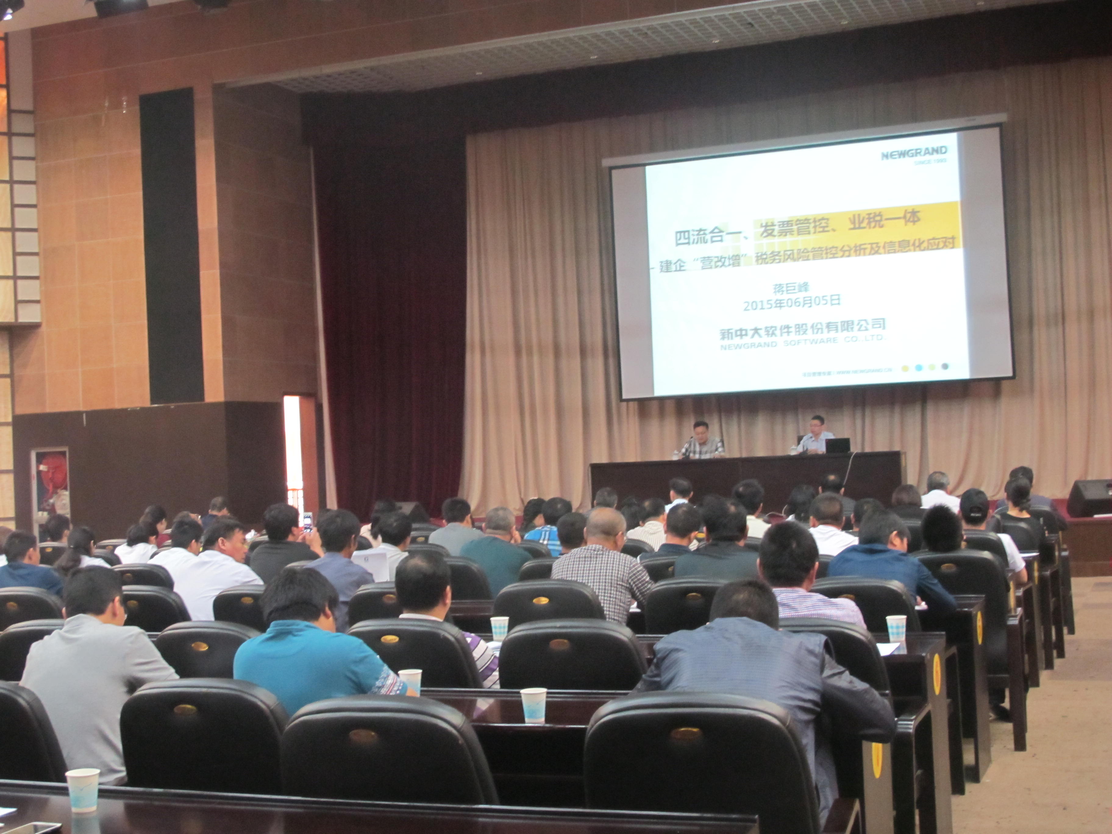 6月 5日上午,在臨海市建設(shè)大樓3樓多功能會議室,舉辦建筑業(yè)“營改增”稅務(wù)風(fēng)險管控分析及信息化應(yīng)對研討會議。本次會議的主辦方浙江大經(jīng)建設(shè)集團股份有限公司在臨海市建設(shè)局領(lǐng)導(dǎo)的大力支持下,聯(lián)合新中大軟件股份有限公司對建筑企業(yè)“營改增”的“四流合一、發(fā)票管控、業(yè)財一體”帶來的風(fēng)險規(guī)避、稅務(wù)應(yīng)對、其他內(nèi)部調(diào)控、管理風(fēng)險應(yīng)對等進行全面的分析。參加此次會議的有:溫嶺建工處、臨海市建設(shè)局、臨海市建工處、天頌建設(shè)、臨海四建、匯經(jīng)建設(shè)、海成集團、偉星房產(chǎn)、大經(jīng)建設(shè)集團(董事長、副總經(jīng)理、三總師及相關(guān)部門人員及各項目經(jīng)理)等共110人。