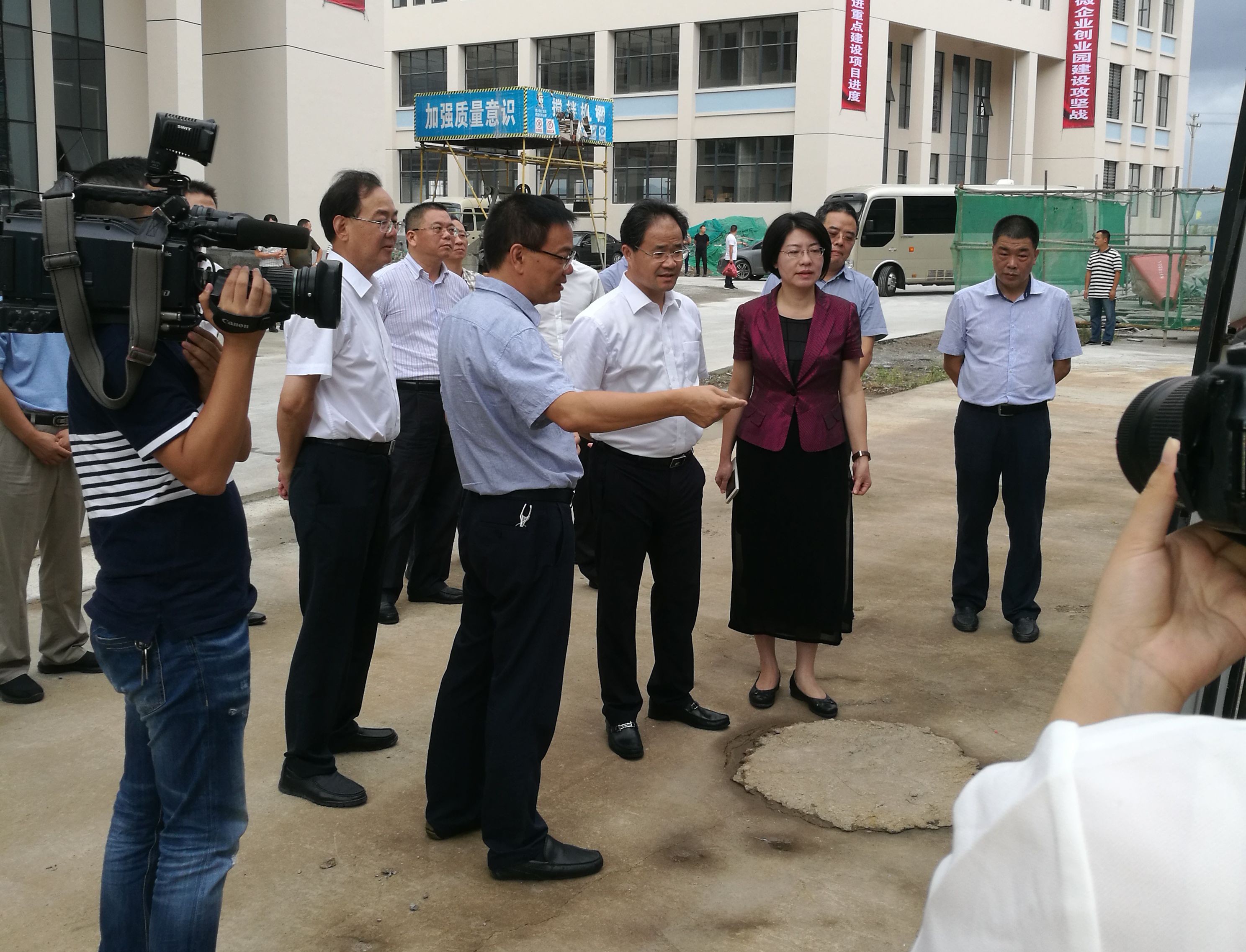 9月27日下午,臺州市委書記王昌榮和臺州市委常委、秘書長單堅(jiān)在仙居縣委副書記、縣長林虹及縣委常委、經(jīng)濟(jì)開發(fā)區(qū)管委會黨組書記鄭旭東的陪同下,來到大經(jīng)集團(tuán)承建的仙居縣經(jīng)濟(jì)開發(fā)區(qū)永安工業(yè)集聚區(qū)標(biāo)準(zhǔn)廠房項(xiàng)目工地考察調(diào)研,集團(tuán)副總經(jīng)理黃愛平陪同。