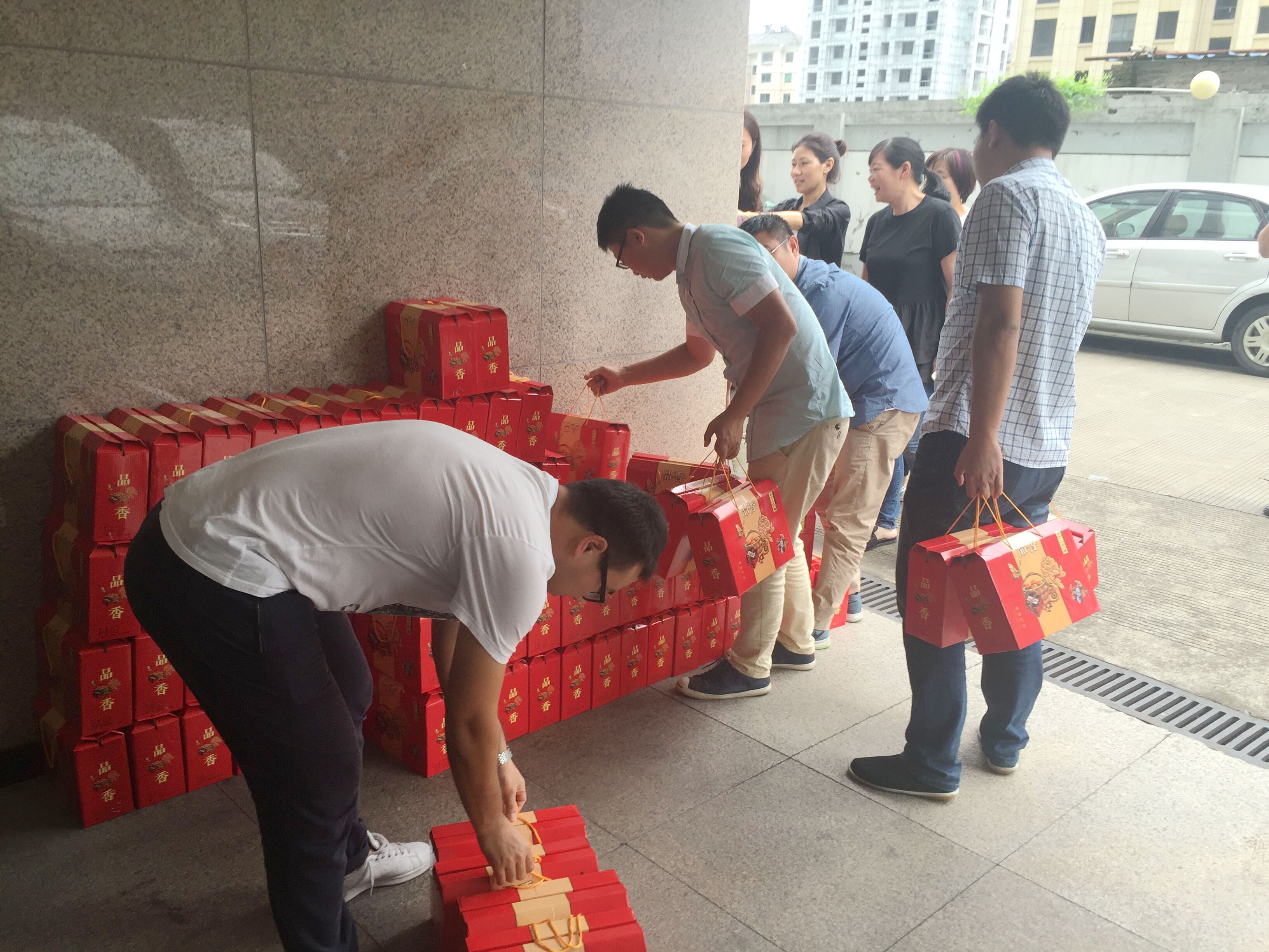 “8月份,工會(huì)剛給我們每人發(fā)了兩箱大黃桃,轉(zhuǎn)眼9月份,中秋節(jié)又到了,公司不但給我們發(fā)過(guò)節(jié)費(fèi),還給我們發(fā)月餅大禮盒,福利實(shí)在是太好啦!”9月12日,前來(lái)領(lǐng)取月餅的小王開心地說(shuō)道。
